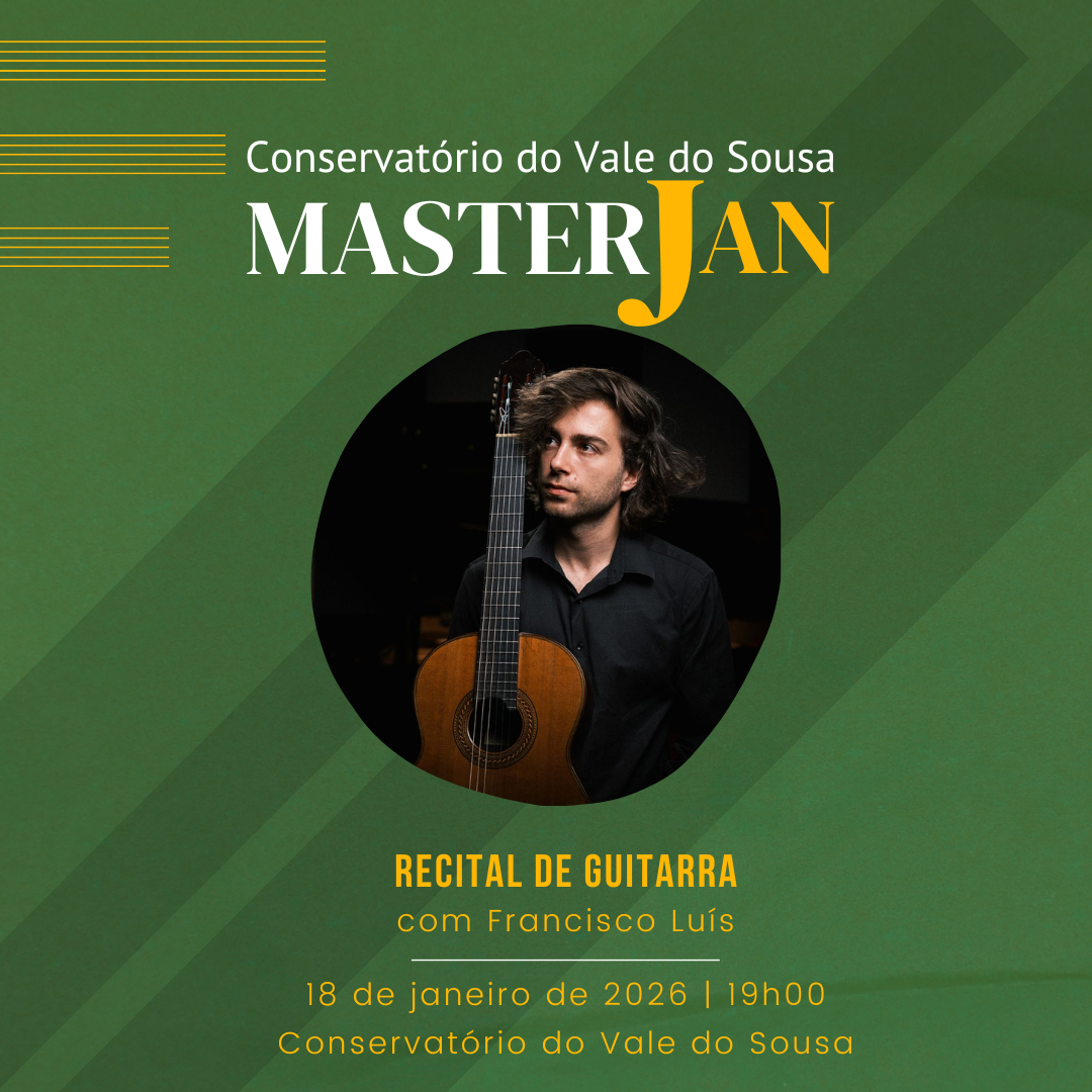 No próximo domingo, dia 18 de janeiro às 19h00, o professor Francisco Luís irá apresentar-se num Recital de Guitarra, inserido na 3ª edição do MasterJan.